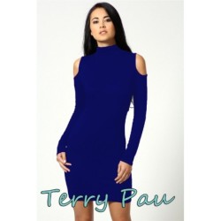 Terry Pau TP101177 Omuzu Açık Uzun Kollu Elbise