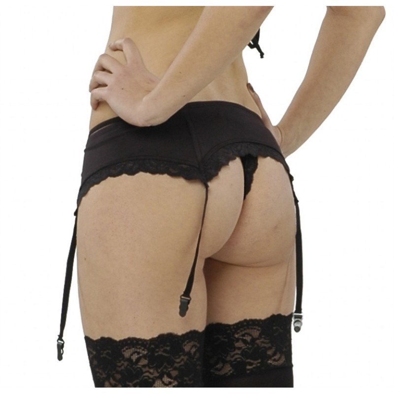 Esnek mikro kumaş altında dantel ve lastikleri ile ayarlanabilen jartiyer kemeri. Beden ve renk seçenekleri mevcuttur. Tanga ve çorap ürüne dahil değildir.